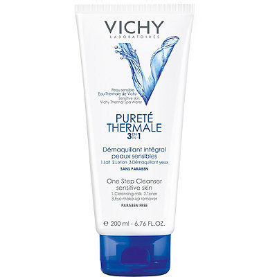 For Sensitive Skin. The Purete Thermale One Step Cleanser combines milk lotion eye make-up remover in a single product. The combination of ultra-effective, ultra-gentle cleansing agents in a very fresh milk-gel offers you ultra-fast, ultra-easy cleansing and make-up removal that removes all traces of make-up while being gentle to your sensitive skin. Perfectly cleansed, skin feels fresh, soft and soothed. The innovative milk-gel texture combines the softness of milk and the freshness of a lotion. Rich yet light, it leaves your skin comfortable with no oily residue. Apply using a cotton pad to face and eyes. Do not rinse off.